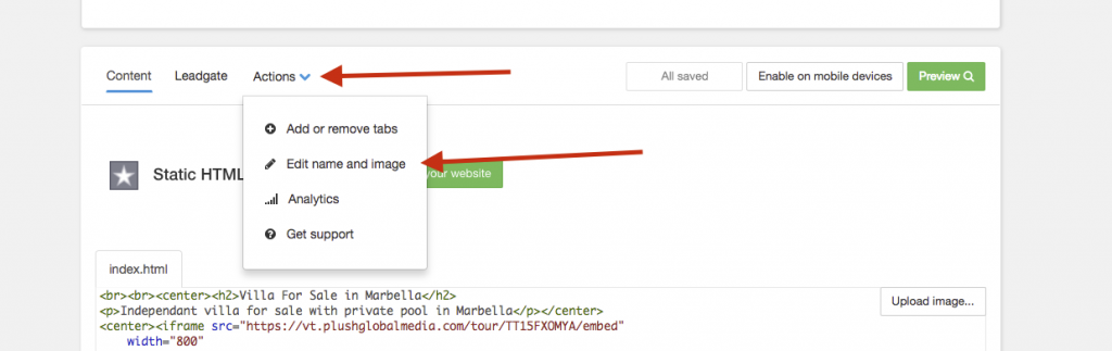 Now here is where you have to put your embed code that your virtual tour provider will send it to you. It should start with “<iframe src=”…”>”