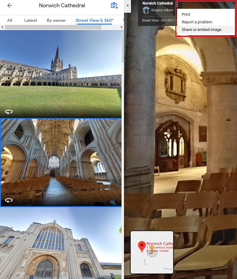 Go to Google maps and find a listing with a virtual tour that you want to embed to your website.